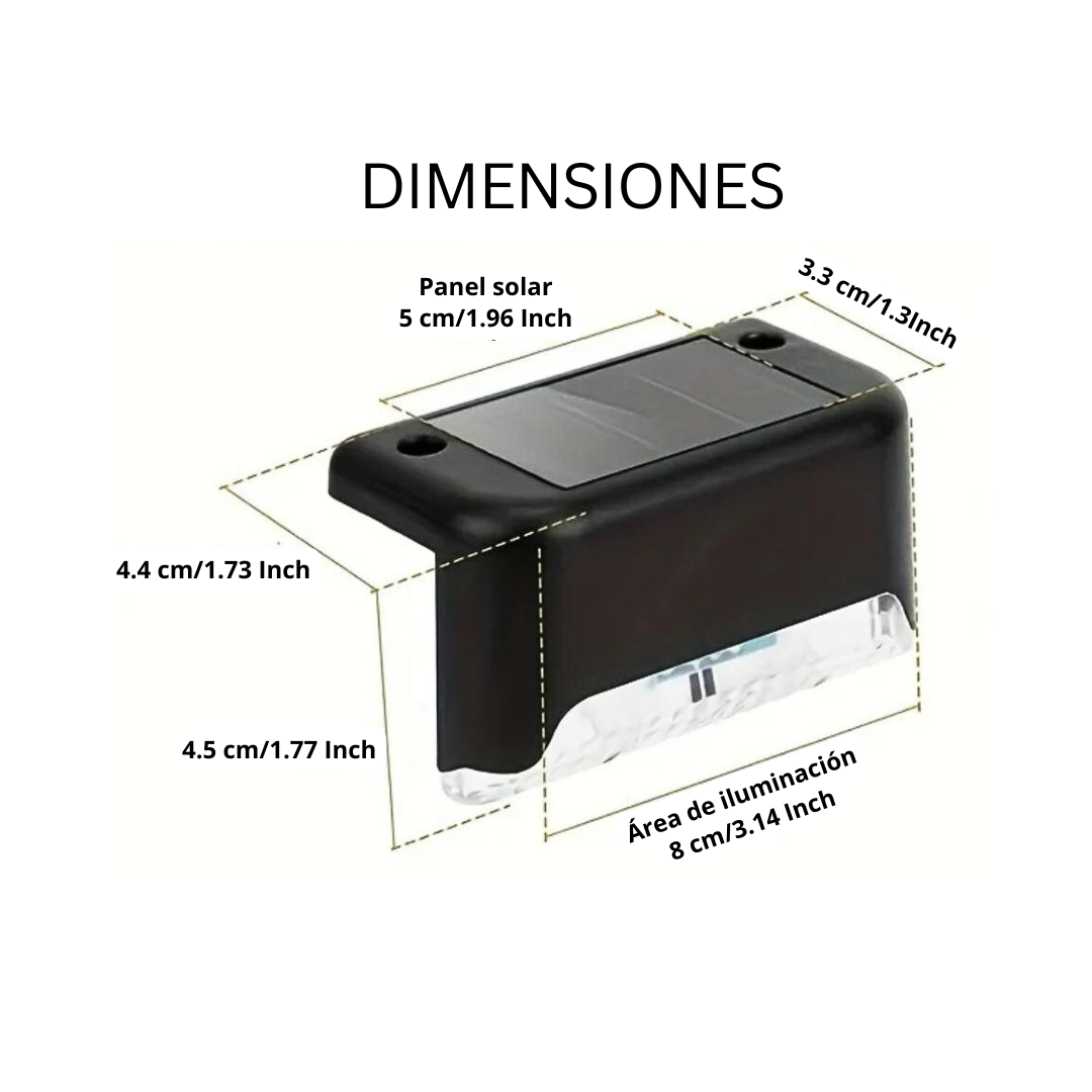4 luces LED solares para escalones - Dimensiones: 78*45*42 (mm)